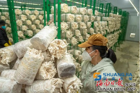位于海南万宁市礼纪镇食用菌种植基地,采用现代化、科技化的方式让秀珍菇住上了智能“宅家”生活。智能出菇房配备了控温、控湿等系统,让秀珍菇“安枕无忧”。在智能环境操控下,维持在适宜的温度、湿度、二氧化碳浓度和光照控制,让秀珍菇安心成长。